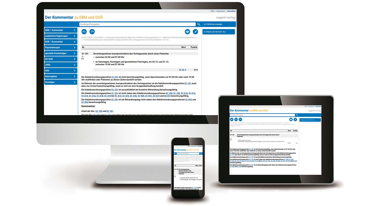 Der „Wezel/Liebold“ auf DVD ist das ideale Abrechnungs-Nachschlagewerk für die ärztliche Praxis. Schnelle Suchfunktionen, das ausführliche Stichwortverzeichnis und die Möglichkeit, eigene Notizen abzulegen, machen die Arbeit mit dem Kommentar einfach und bequem.